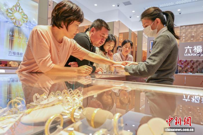 2026年1月1日,顾客在cdf海口国际免税城选购黄金饰品。中新社记者骆云飞摄